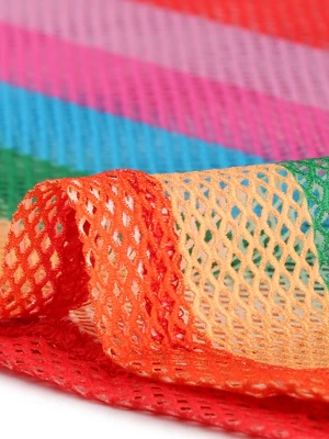 Made of lightweight fabric, this blouse details a rainbow style and adds to your unique wearing style. With colorful colors and designs with mesh semi-sheer, suits for a night out or a party. Pair it with jeans and high heels to complete the overall look. Model Body Size: Height: 5’9″, Chest: 31 4/5 inches, Waist: 23 1/5 inches, shoulder width: 16 1/5 inches, Weight: 124.6 lbs.