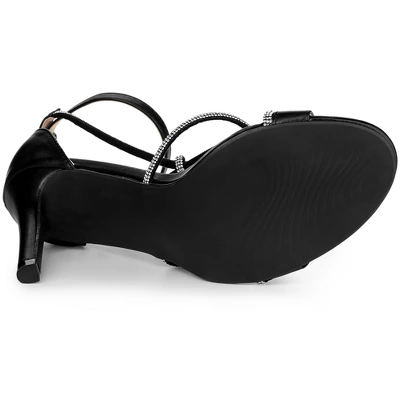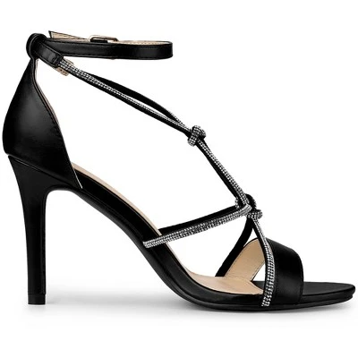 These rhinestone high heels sandals are made using faux leather with knot detailing to an open-toe design and a complimenting stiletto heel. Rhinestone; Ankle Strap; Stiletto Heel; Open Toe; Knot Strap; Vamp: Faux Leather; Outsole: Rubber; Heel: ABS; Heel Height: 3 7/8 inches. Occasion: Party, Office, Evening, Dating, Cocktail. Please check your size to make sure the item fits before ordering.