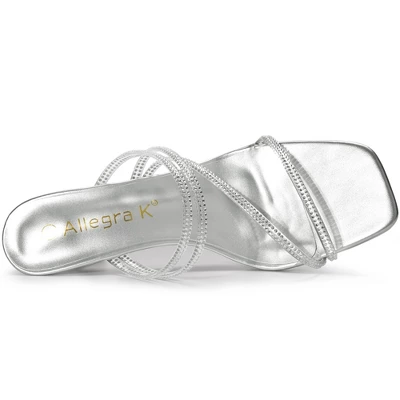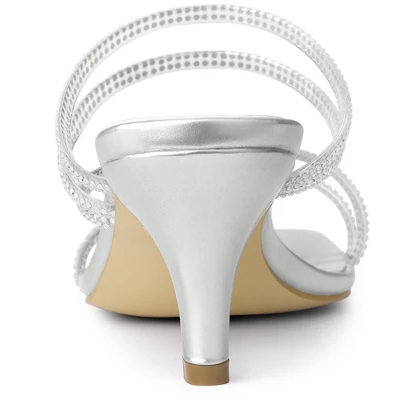 Strappy rhinestones decorate slide-style kitten heels and sandals for a modern feel. Featuring a square and open toe, they are perfect for matching your skinny jeans, dresses, skirts, or leggings. Your options are endless! They are also easy to be paired with jeans or a skirt for a casual look.