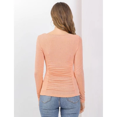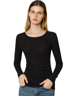 - Ruched Detail at Front and Back, Round Neck, Long Sleeves
