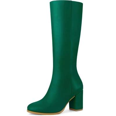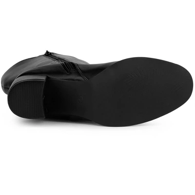 - Knee High Ankle Boots, Chunky Heels, Round Toe, Side Zip Closure