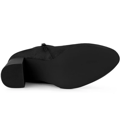 These sleek high-heeled booties put a little pep in your step with a cool buckle strap (but there’s an inside zip for easy on-and-off). High-heeled boots make you more elegant when you go shopping for work or prom. Buckle Ankle Boots; Round Toe; Side Zip; Chunky Heel; Vamp: Faux Suede; Outsole: Rubber; Heel: ABS; Heel Height: 3 5/9 inches; Shaft Height: 3 5/9 inches. Rubber Outsole and ABS heel, anti-slip effectively. Faux suede vamp, makes your boots look more textured. Moderate heel height, make you feel more comfortable.