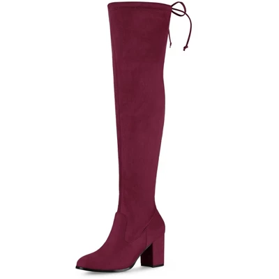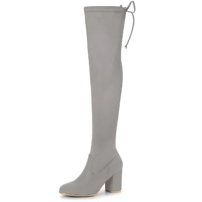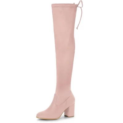- Side Zipper, Lace Up, Block Heels, Rounded Toe, Over the Knee High
