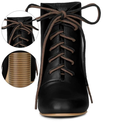These fashionable lace-up ankle boots have a round toe with a coordinating chunky heel and cross straps for a versatile beauty that can’t be beaten. These boots can be paired perfectly with your fall and winter dresses. These spectacular ankle boots will amp up any jeans/dresses/outfits. Enjoy every step in these ultra-comfortable ankle booties.