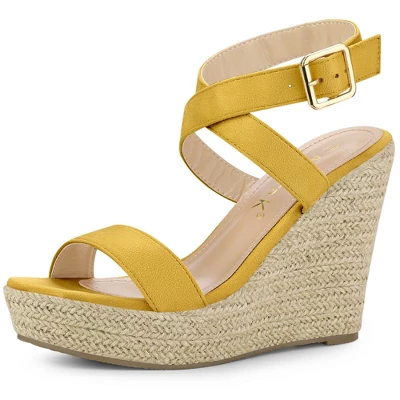 Modern and minimalist, an essential espadrille sandal set on a wedge platform heel serves as a versatile go-to style. Easy to pair them with your favorite denim jeans, shorts, skirts, and your everyday casual wear! Vamp: Suede; Outsole: PVC + Rubber + Espadrille; Heel Height: 4 1/2, Platform Height: 1 3/8. Please allow a 1-2cm difference due to different manual measurements.