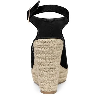 These high heels sandals are made using faux suede with a peep toe and slingback design and a complimenting wedge heel. Easy to pair with jeans or a skirt for a casual look. Occasion: Party, Office, Evening, Dating, Cocktail. Platform; Slingback; Wedge Heel; Peep Toe; Vamp: Faux Suede; Outsole: TPR; Heel: EVA+TPR; Heel Height: 4 1/2 inches; Platform: 1 3/8 inches.