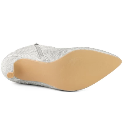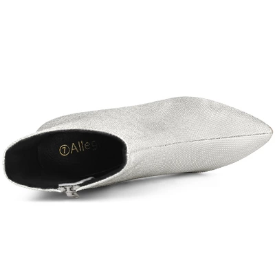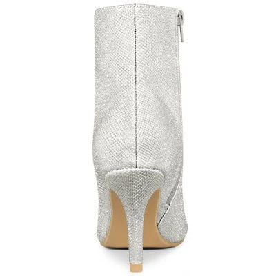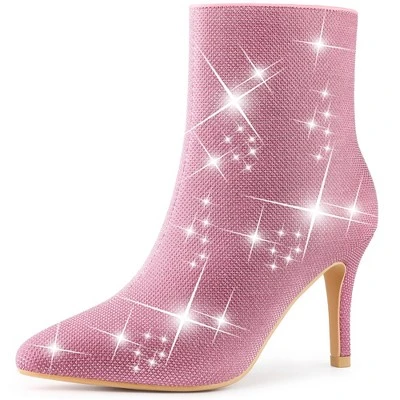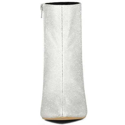All-over sequins add a burst of glamour and the charm of fairy temperament to the timeless silhouette of these stiletto heels. These side zip ankle boots are shaped with an elongated pointy toe. Bling Sequin Ankle Boots; Pointy Toe; Stiletto Heel; Occasion: Party, Office, Casual, Christmas Days, Dating, Evening; Vamp: Faux Leather; Outsole: Rubber; Heel: ABS; Heel Height: 3 1/3 inches; Shaft Height: 5 1/3 inches.