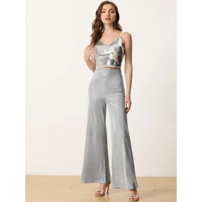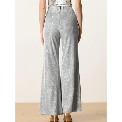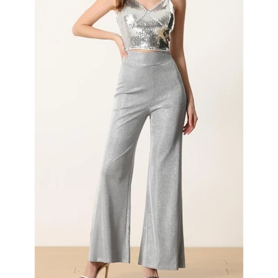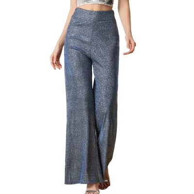 - Solid Color, Sparkly Glitter, Elastic High Waist, Stretchy, Wide Leg Long Pants