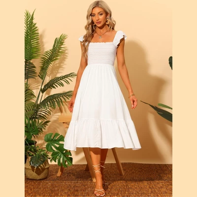 In a smocked front and contrast decor design, made of lightweight fabric, the dress can fill your outfit’s collection in your wardrobe. The soft fabric makes flowy ruffles below the knee in a flared dress a tiered shirred hem. Suitable for summer and for many occasions, such as casual, dating, cocktail party, weekend gathering, sunny beach, travel, and daily wear.
