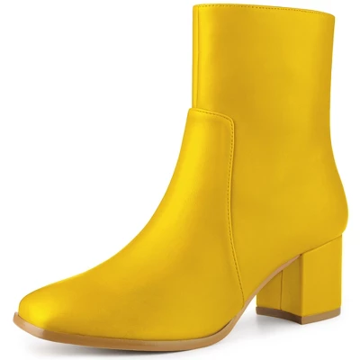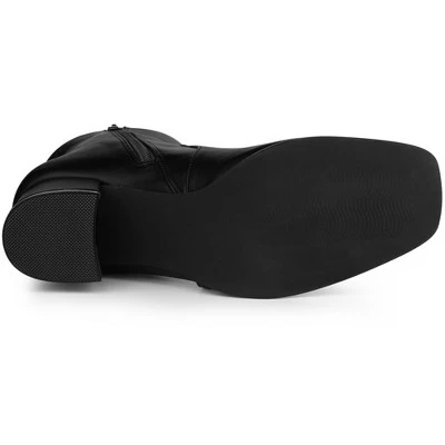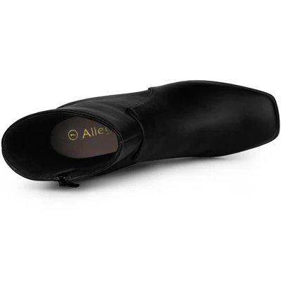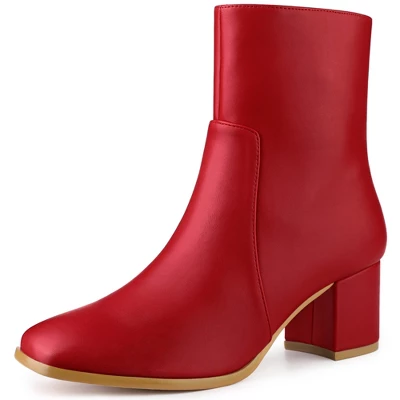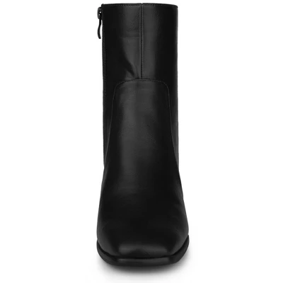 - Square Toe Ankle Boots; Block Heel; Side Zip
