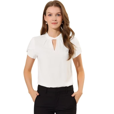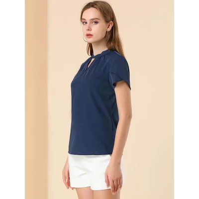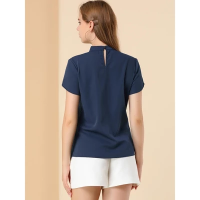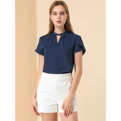 - This blouse feature a stand collar, keyhole neck and pair with skirts or trousers and high heels for an elegant look