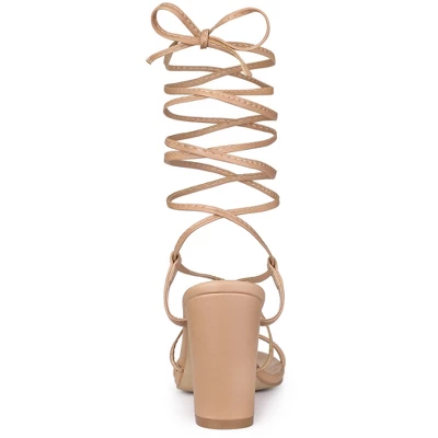 - Strappy, Block Sandals, Crisscross Strap, Open Toe, Lace Up