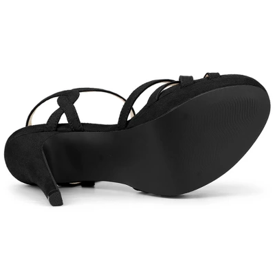 These platform stiletto-heel sandals feature a faux suede upper, an open toe, crisscross straps, and a covered high heel. Pair these platform stiletto heels with your favorite fashion dress. The solid color design creates an elegant and dignified style, and the simplicity and fashion complement your look. Great for your mother, girlfriend, sister, or friend as a gift.