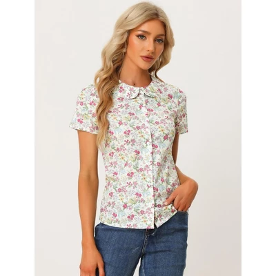 A chic and feminine short-sleeve blouse with a Peter Pan collar brings instant romance to any look. Pair this stylish blouse with any bottoms to create casual outfits. Relaxed fit and falls to the hip will be flattering in many body types. Whether you’re in the office or out on town, this doll-collar blouse is perfect for any occasion. Occasion: Daily, Dating, Office, Shopping, Vacation, etc. The model is wearing an X-Small.