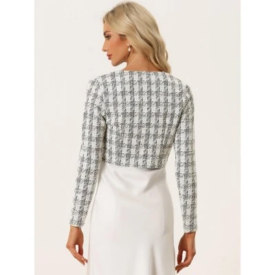 - This crop shrugs design with a tie front and plaid tweed pattern details adds your feminine