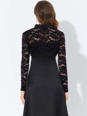 This lace cardigan is designed with a long sleeve, a unique scalloped hem with lace trim, and cropped shrug. The shrug top features a stand collar and an open front design that can make you wear it on and down. The elegant bolero shrug is perfect for dress-up to complete the charming look. Great for spring/fall, casual daily, cocktail, evening party, wedding party, Day, work, dating, coffee shop.