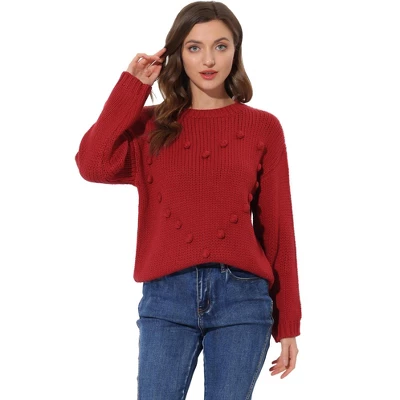 Crew neck pullover sweater features heart shaped pom pom decor for front and sleeve details to show your romantic and energetic. Style with any skirt, jeans, denim shorts, boots to complete your simple but chic look with this soft lightweight pullover sweater. Sweet pom pom detail evaluates this loose fit crochet pullover and keeps you cozy and warm during fall, winter and spring.This lightweight sweater adds a cute design with heart shaped pom pom pattern design.