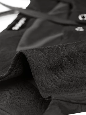 - U neck. Sleeveless. Tie front. Floral lace trim. Fully lined. Jacquard fabric. Regular fit