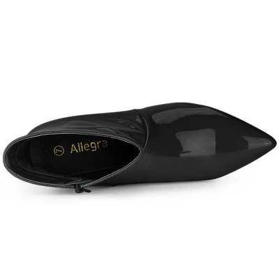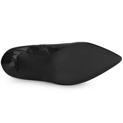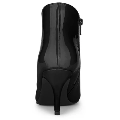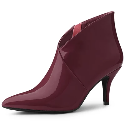 With a V shape, inside zips for fastening, and stiletto heels, team these chic boots with skinny jeans and a skirt from the full range for the top-to-toe look. Perfect for casual walking and lounging around. Ankle Booties; V Shape; Pointy Toe; Stiletto Heel; Zipper Closure; Vamp: Faux Patent Leather; Outsole: Rubber; Heel: ABS.