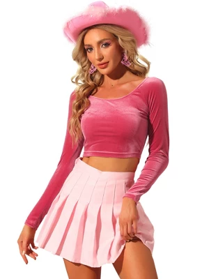 A velvet top with a cropped and off-shoulder design offers a charming look for day or night. This velvet crop top is perfect for being paired with everything high-rise in your closet. Versatile and comfortable, it’s meant to fit easily into your wardrobe as a staple layer for every day. Soft and shimmery velvet fabric brings instant romance to any day or night look. Perfectly pair it with jeans or cargo pants for a casual and fashionable look.