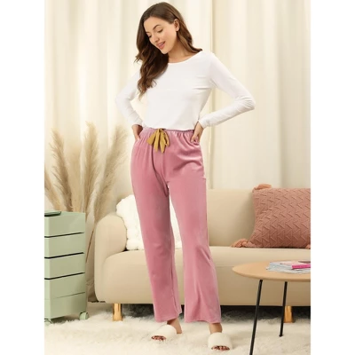 Polyester and spandex fabric with stretch for ease of movement, lightweight with warmth but no losing shape or bulky look. In a wide-leg silhouette style with a feminine touch, a classic look that is perfect for exercise or on days out; The waistband with drawstring makes easy pull-on; Look slim in balance, the straight-leg cut silhouette design is perfectly matched with a printed sports bra or tank top. These super soft pants are great for pilates, sporting, vacations, bedtime, office, fitness, family gathering, Loungeing around, and relaxing at home. Super soft fabric with slightly shiny, decor drawstring design show off your youthful and femininity style.