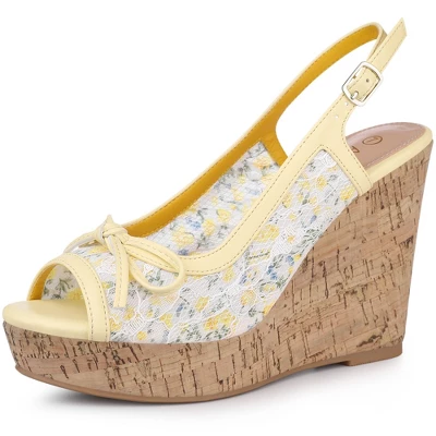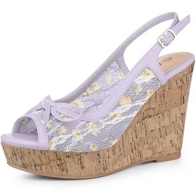 - Platform Wedges, Lace Wedge Heel Sandals, Open Toe, Bow Decor, Wood Wedges Sandals