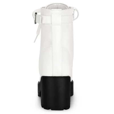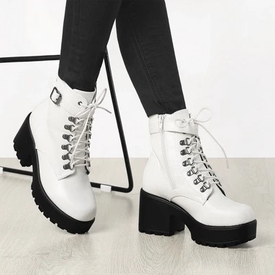These ankle platform boots in a lace-up style are very comfortable with the Lightweight outsole and the PU foam bottom. These combat boots are convenient for you to walk every day. They are paired well with jeans and skirts. Perfectly for Christmas, Halloween, and parties. Please check the size measurement chart before ordering.