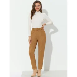Allegra K Faux Leather Pants For Women’s Drawstring High Waist Joggers Casual Tapered Trousers