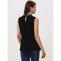 Allegra K Women’s See-Through Stretch Halloween Smocked High Neck Long-Sleeve Lace Floral Blouse