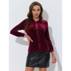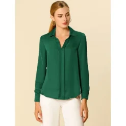 Allegra K Women’s Elegant Satin Long Sleeve Office Work Blouses Tops