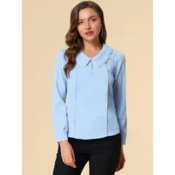 Allegra K Women’s Peter Pan Collar Shirt Crochet Trim Long Sleeve Chiffon Work Office Blouse