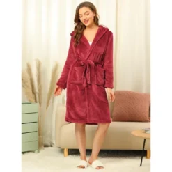 Allegra K Women’s Hooded Pajamas Luxurious Flannel Fleece Nightgown Midi Warm Bathrobe