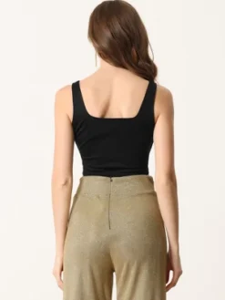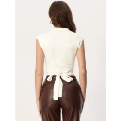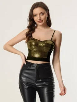 Allegra K Open Back Glitter Tops For Women’s Sleeveless Crossover Backless Glitter Halter Top