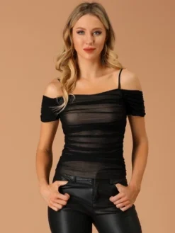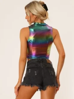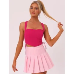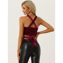 Allegra K Women’s Party Tanks Punk Sleeveless Gothic Velvet Halter Cold Shoulder Camis Crop Tops