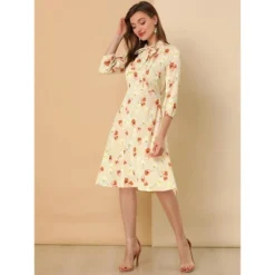 Allegra K Women’s Front Tie Neck 3/4 Sleeve Work Bodycon Dress