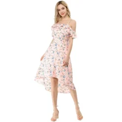 Allegra K Women’s Spaghatti Straps Ruffled Sleeves Asymmetrical High Low Floral A-Line Midi Dress