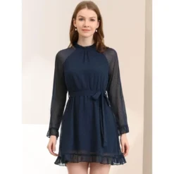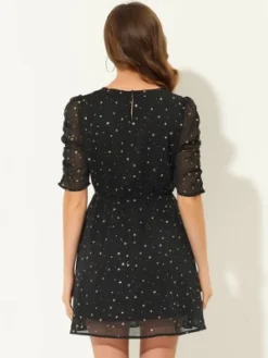 Allegra K Women’s Houndstooth Plaid Contrast Color Crew Neck Button Front Elegant A-Line Dress