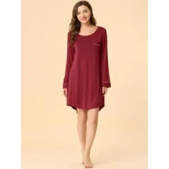 Allegra K Women’s Lounge Dress Pajamas Soft Long Sleeve Mini Sleepwear Nightgown