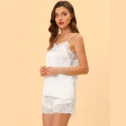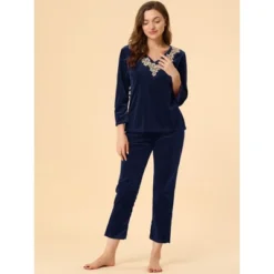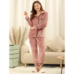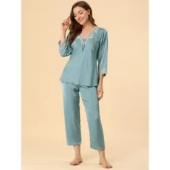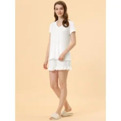Allegra K Womens Short Sleeve Notch Collar Piped Button Down Sleepwear Polka Dots Pajama Sets